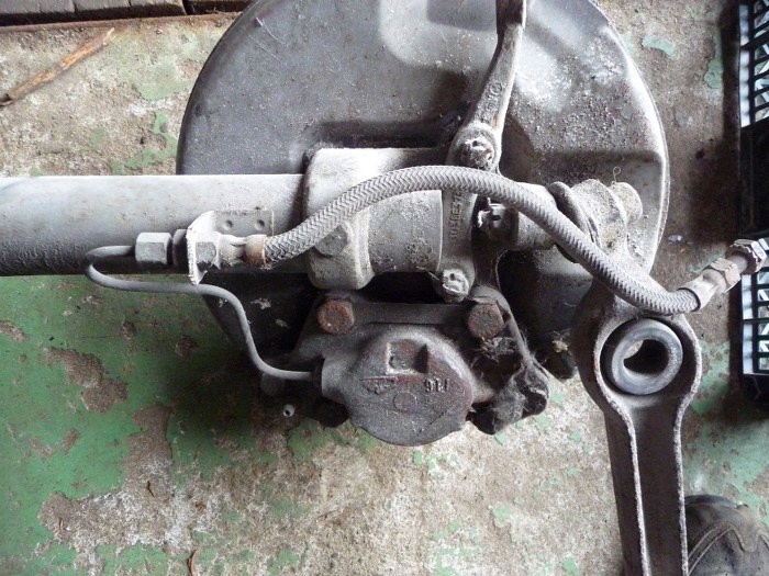 Z jednej strony nawet przewód hamulcowy elastyczny został fabryczny. Osłony tarcz hamulcowych ładne, niepogięte.