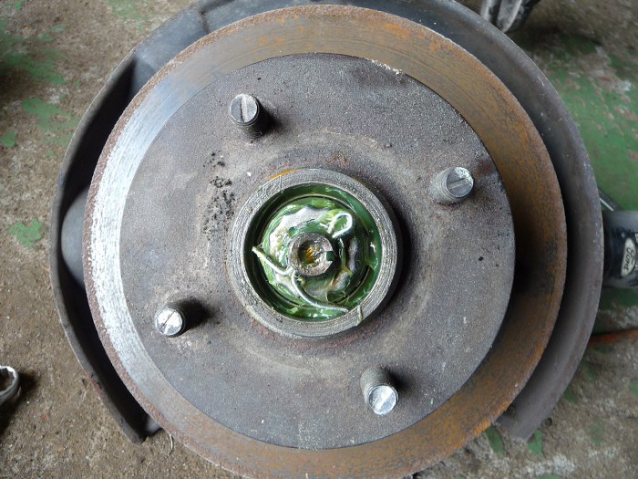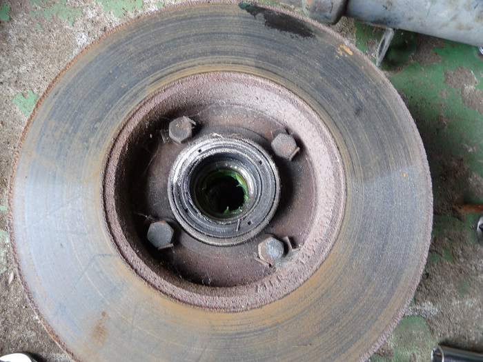 Pora na zdjęcie tarcz hamulcowych i wyjęcie łożysk wraz z bieżniami.