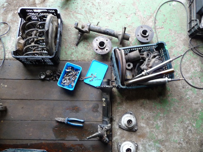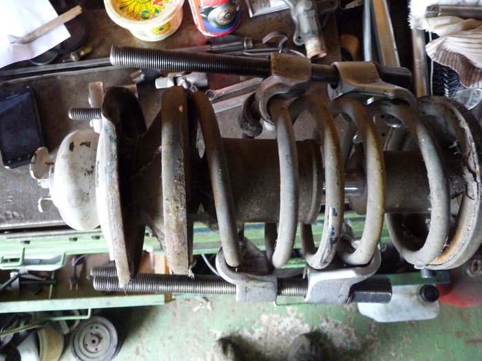 W zasadzie tylko amortyzatory w tym zawieszeniu kwalifikowały się do wymiany - rozleciały się podczas wyjmowania, czyli już w ogóle by nie działały w aucie. Reszta elementów jest w bardzo dobrym stanie. Wymienione zostanie to co trzeba, całość zostanie odnowiona.