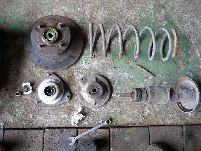 Remont blachy w Capri kolegi Kornika się nieco przeciąga, więc żeby później nie musiał czekać na zrobienie reszty gratów postanowiliśmy zająć się zawieszeniem. Dzięki temu po skończonej blacharce będzie można auto od razu postawić na kołach na gotowo.