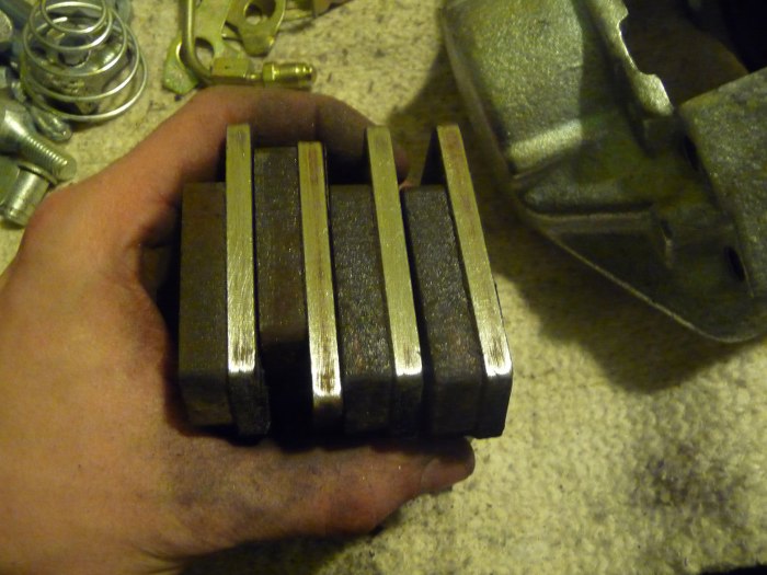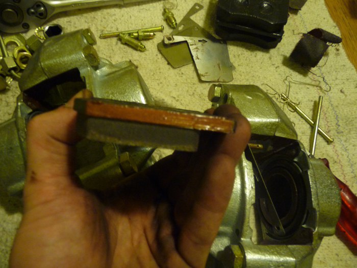 Natomiast na klockach hamulcowych płaszczyzny stykające się z zaciskiem zostały oczyszczone z farby.