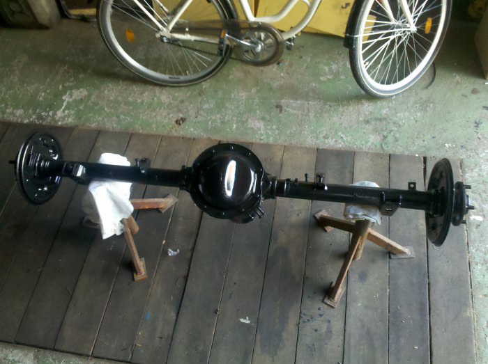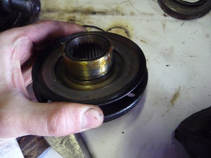 Pusta jeszcze tarcza kotwiczna. Dobrze, że nie ma wycieków z uszczelnień łożysk półosi, przynajmniej tego nie trzeba ruszać, bo łożyska są idealne.