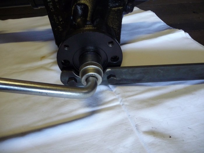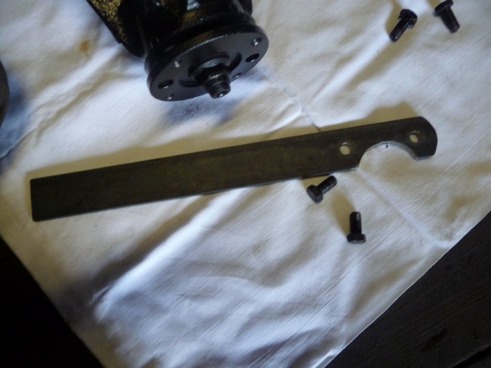 Przyrząd do odkręcania nakrętki flanszy wału. Mimo przyrządu łatwo nie ustąpiła.
