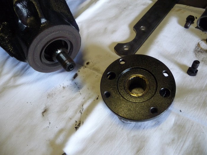 Po wciśnięciu nowego uszczelniacza flansza wraca na swoje miejsce, jeszcze tylko trzeba ją nasmarować.