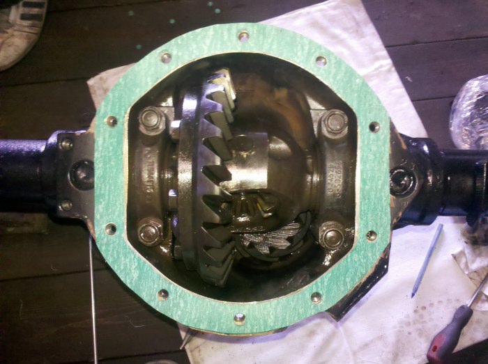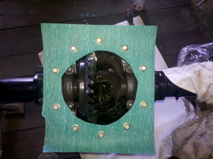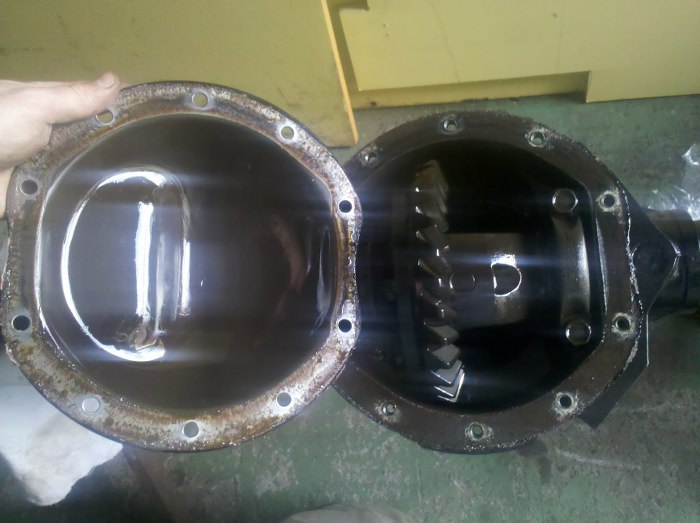 Kiepskie zdjęcie, bo aparatu pod ręką nie miałem, ale może nieco widać jaki szlam był w moście. Teraz pokrywa trafiła do piaskowania i malowania proszkowego, a wnętrze mostu porządnie umyłem. Luz międzyzębny jest bardzo mały, a łożyska są w stanie idealnym.