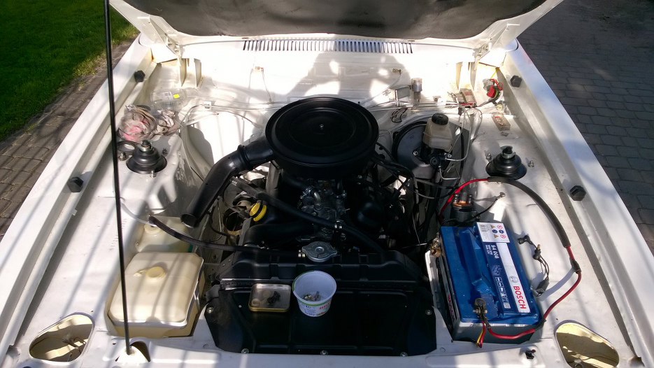 Wygłuszenie maski zostało wymyte, niestety było pomalowane na biało podczas prac przeprowadzonych przez poprzedniego właściciela. Kornik pomalował tą gąbkę na czarno. Potem została przyklejona na swoje miejsce pod maską.