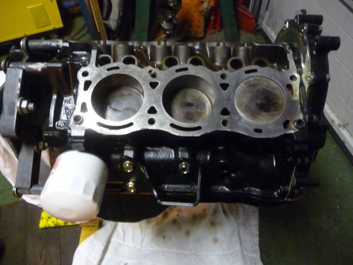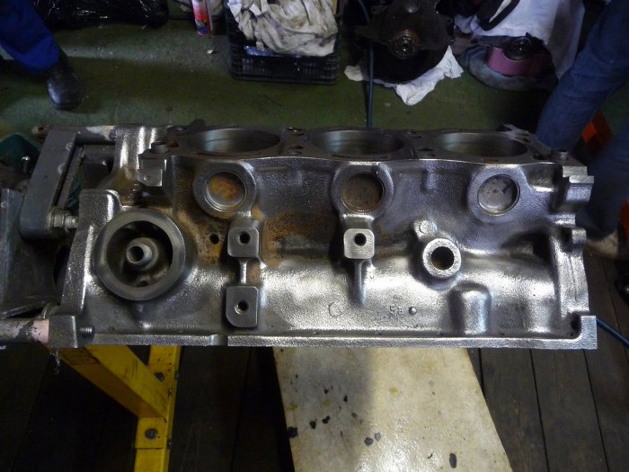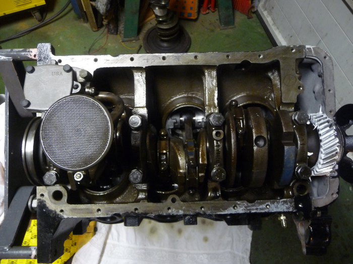 Silnik wrócił ze szlifierni wstępnie umyty. Jak jednak widać, w środku jest jeszcze masa brudu ze starego oleju.