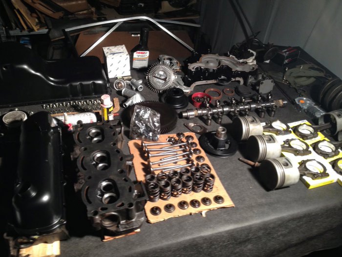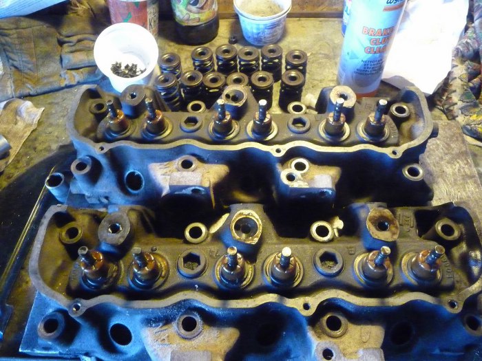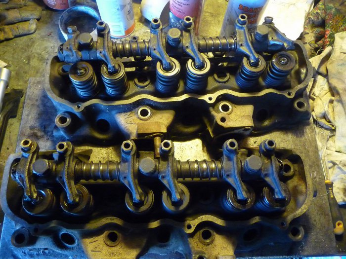 Silnik chwilowo odkładam na bok. Z głowic odkręciłem zestawy dźwigienek popychaczy i rozpiąłem zawory.