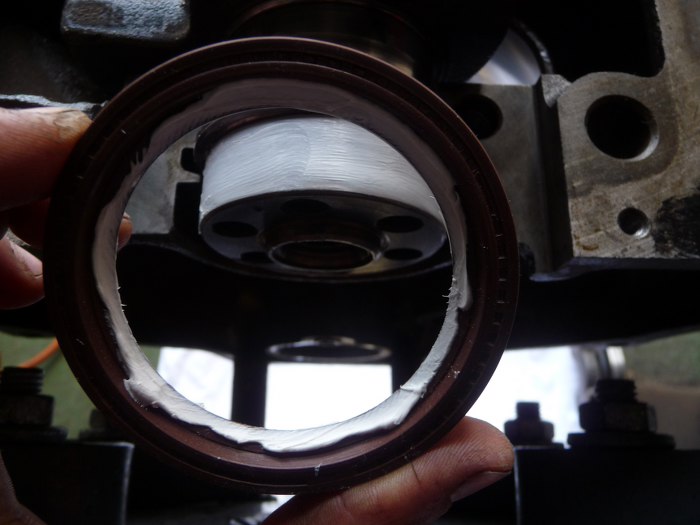 Potem włożyłem wał korbowy i go przykręciłem. Do ostatniej podpory wału włożyłem simmering posmarowany smarem montażowym.
