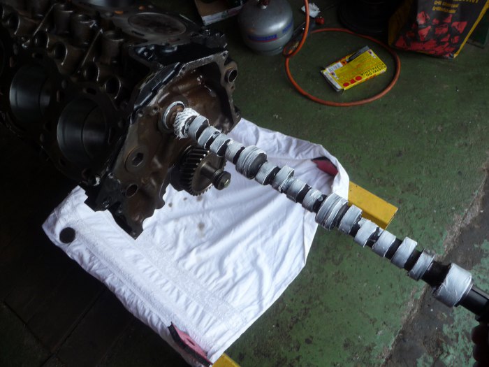 Następny w kolejce do włożenia był wałek rozrządu, również posmarowany smarem montażowym.