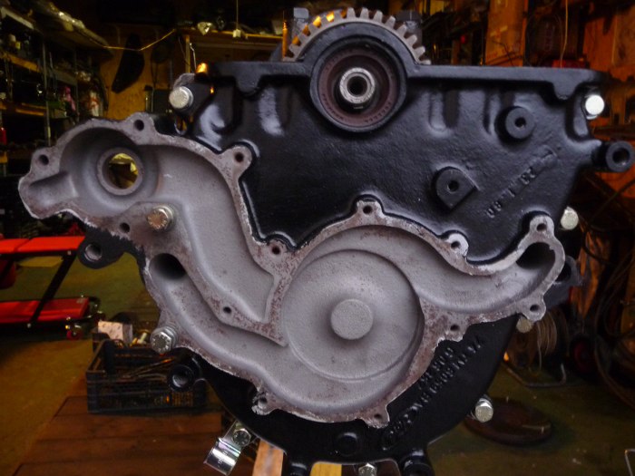 Pompa i smok przykręcone. Widać też smar na kole rozrządu.