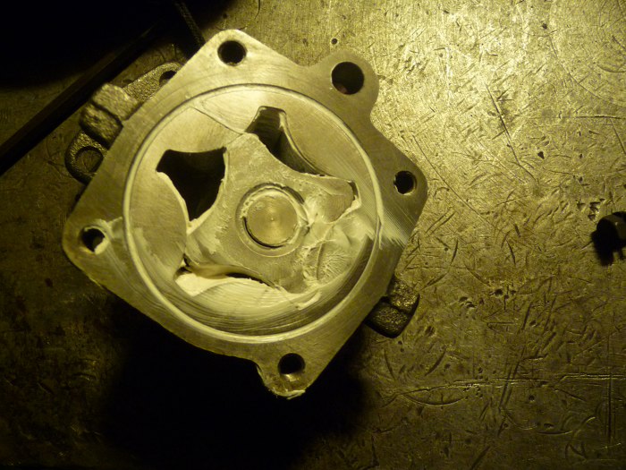 Pompę oleju zakładam nową. Otworzyłem obudowę, żeby również tu posmarować smarem montażowym - ułatwi to pierwsze zassanie oleju przez pustą jeszcze pompę.