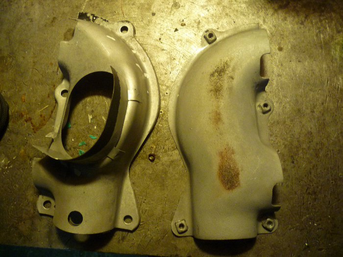 Niewiarygodna rzecz stała się ze stalową osłoną kolektora wydechowego. Zazwyczaj jest to doszczętnie przerdzewiałe. Tu wyglądało nieszczególnie, bo też było zardzewiałe, natomiast wrzuciłem to do specjalnej chemii odrdzewiającej. Okazało się, że rdza prawie cała zniknęła, a blacha jest w bardzo ładnym stanie. Do tego stopnia jest ładna, że zostanie ocynkowana. Inna sprawa, że wszystkie śruby mocujące odkręciłem i żadnej nie urwałem, to też jest niecodzienne wydarzenie.