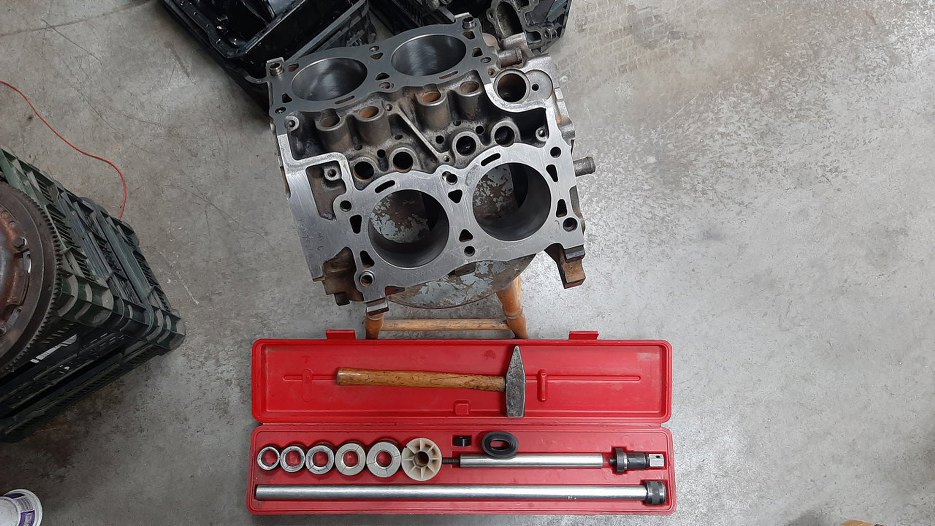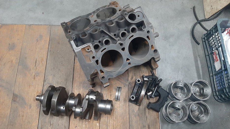 Ostatecznie skompletowałem sporo rzeczy z silnika, który miałem zachomikowany na zapas. Z 1.7 oryginalnego zostawiłem w zasadzie tylko wał korbowy... Blok, korby, tłoki są inne. I z tego zbudujemy silnik.