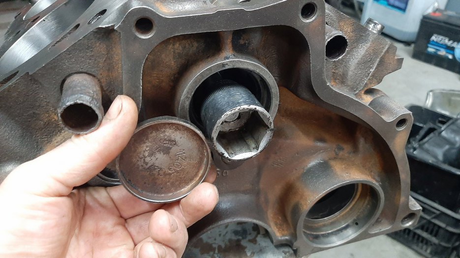 Wyjąłem zaślepkę bloku zasłąniającą wałek rozrządu.
