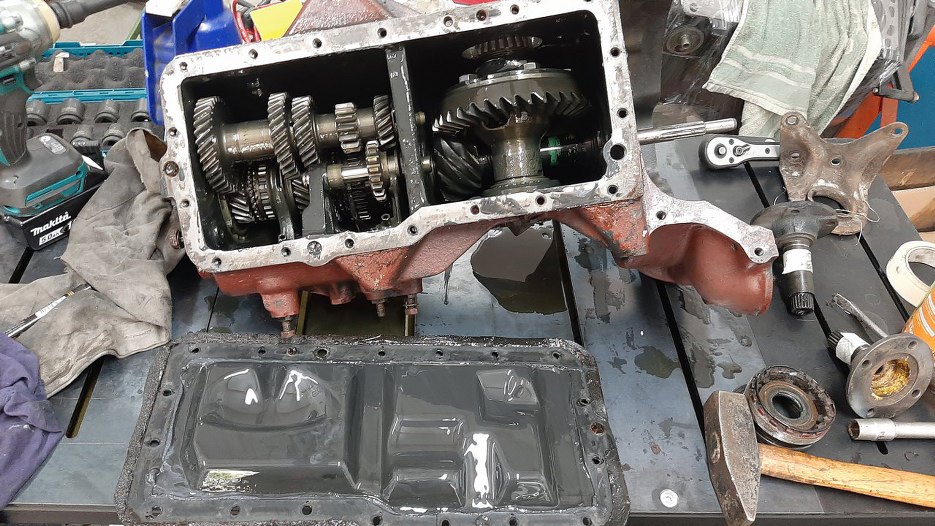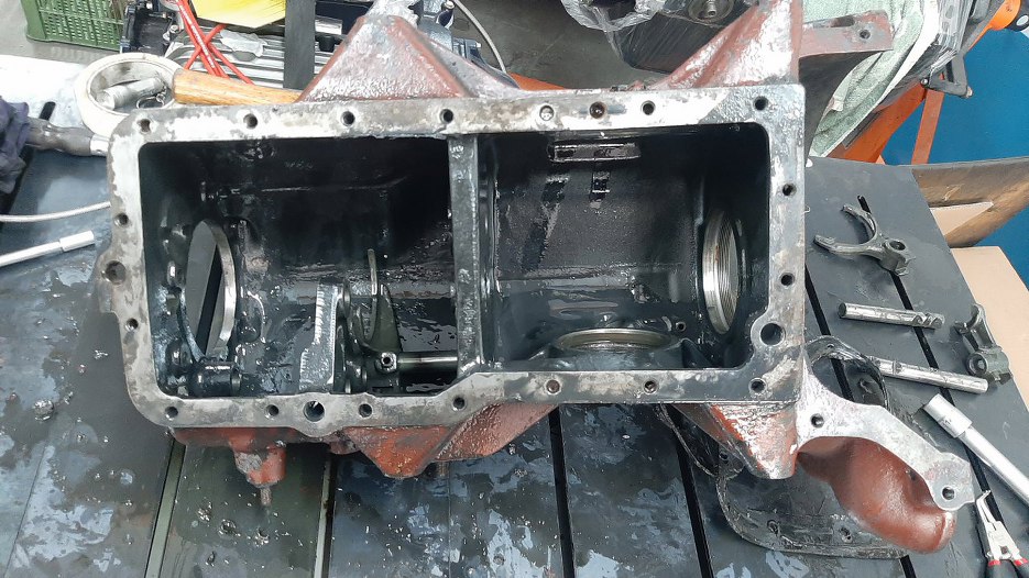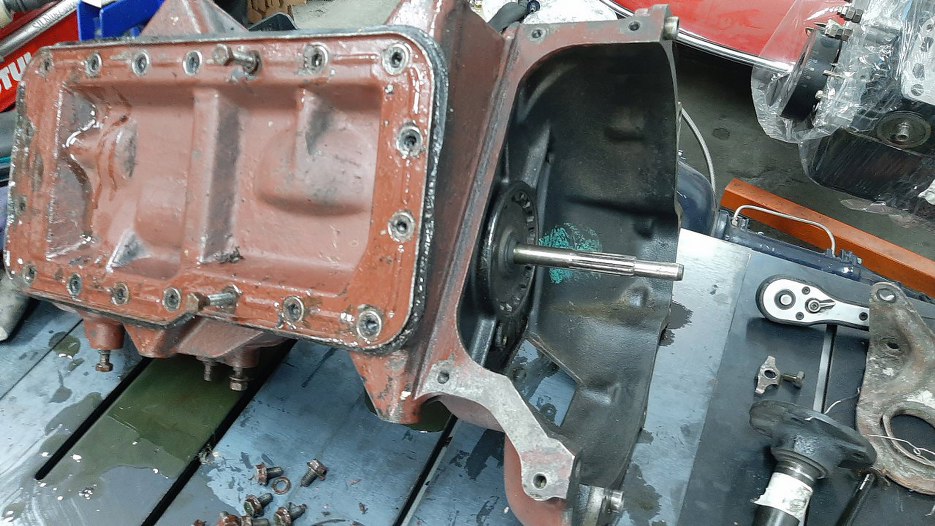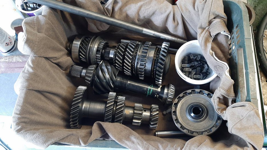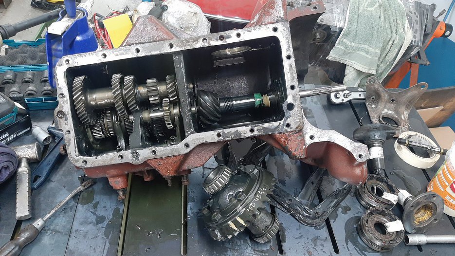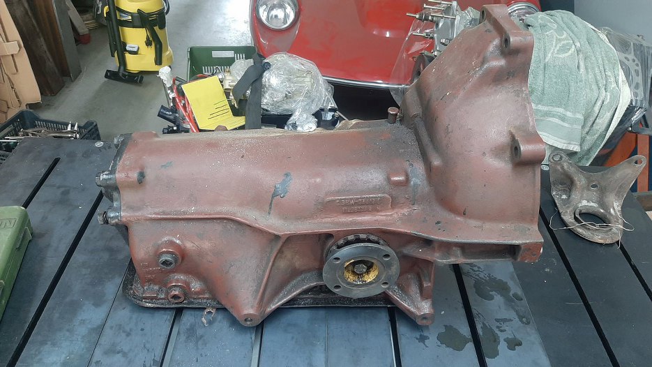 Czyli musimy wyjąć silnik z Matry. W sumie czemu nie, i tak mnie to czeka, ale póki co, Matra jeździ. A jak ja z nią zacznę, to na trochę przestanie. I pojawił się inny temat. Skrzynia biegów. Oryginalna skrzynia biegów z Matry została wyjęta przez poprzedni warsztat, włożona została inna. I do niej Włodek też ma zastrzeżenia. Dlatego dostałem od niego tą starą skrzynię do przejrzenia, żebyśmy mogli ją włożyć do samochodu razem z nowym silnikiem. Czyli teraz robimy przerwę od silnika, ogarniam skrzynię, a jak tylko będę miał wolne stanowisko w garażu, to wyciągam cały obecny napęd z Matry i lecę dalej z pracami.