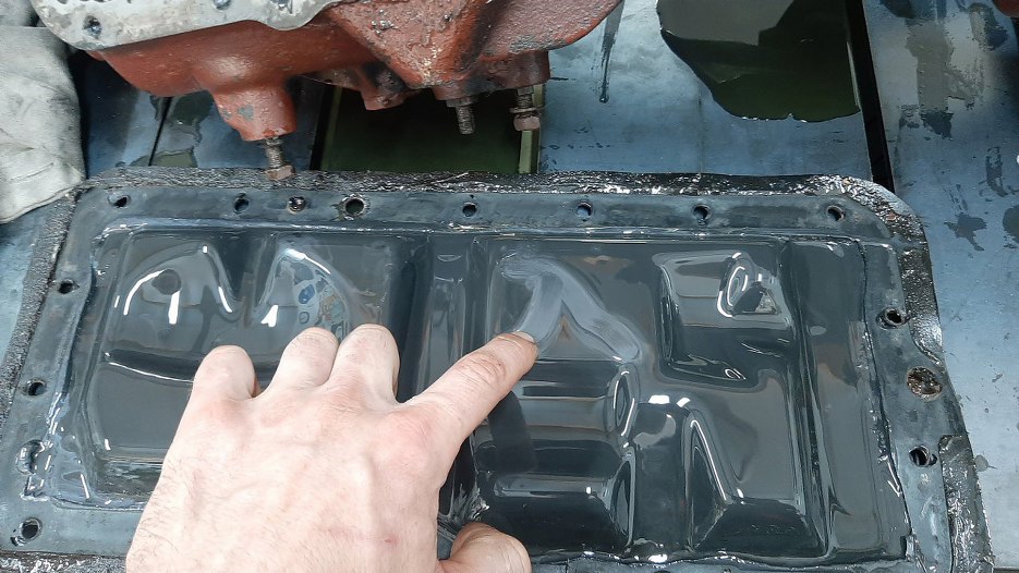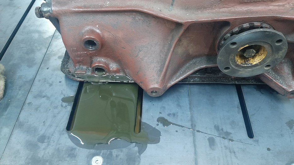 Przewróciłem teraz skrzynię na bk i odkręciłem śruby miski olejowej.