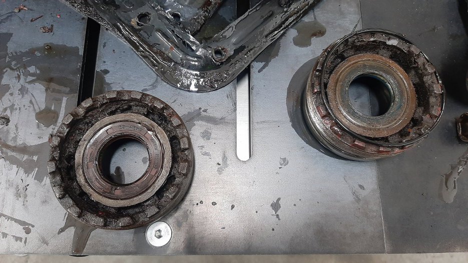 Z obu stron były różne uszczelniacze. Ten po prawej, solidniejszy, wydaje się oryginalny, po lewej już musiał być wymieniany.
