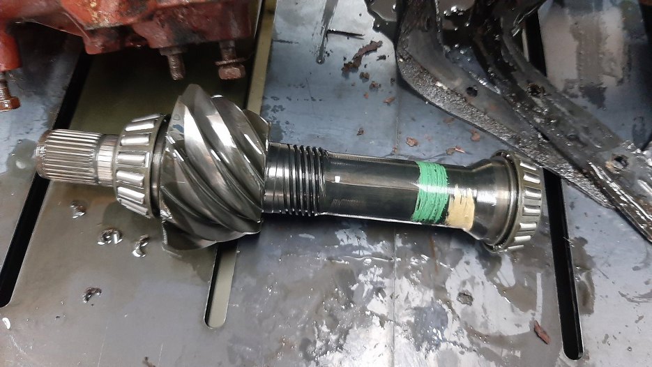 A to jest wałek sprzęgłowy. Oryginalnie ta skrzynia występowała w Taunusach 12M, przednionapędowych Fordach z lat '60. Miały one oryginalnie silniki 1,3 V4. I na tyle ten wałek się nadaje... W Matrze był silnik 1.7, co moim zdaniem jest blisko granicy wytrzymałości tej części... Dlatego wszelkie plany wzmocnienia silnika poradziłem właścicielowi mocno zrewidować... Ten wałek sprzęgłowy jest nawet cieńszy niż wałek ze skrzyni w Saabach 95/96, z której tak się śmieję, że słaba.