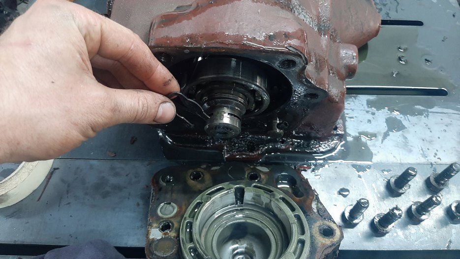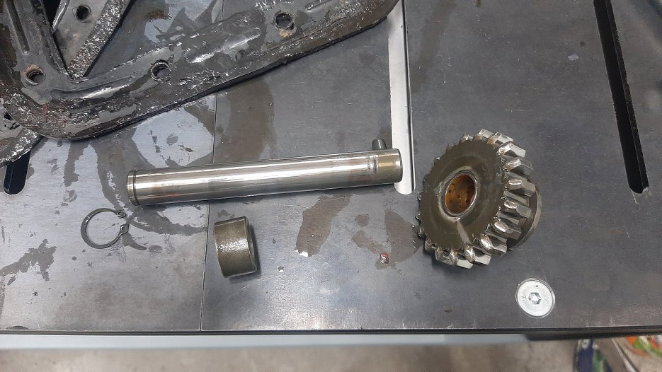 Wyjąłem spinkę z wałka - to ona trzyma wałek sprzęgłowy w tym kole zębatym.