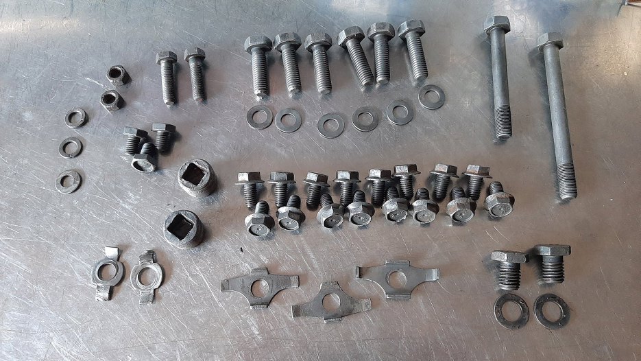 Jak widziałeś na poprzedniej stronie, mam już przygotowane praktycznie wszystkie części wewnętrzne. Pora na przygotowanie zewnętrznych. Odrdzewiłem wszystkie śrubki i przygotowałem je do ocynkowania.