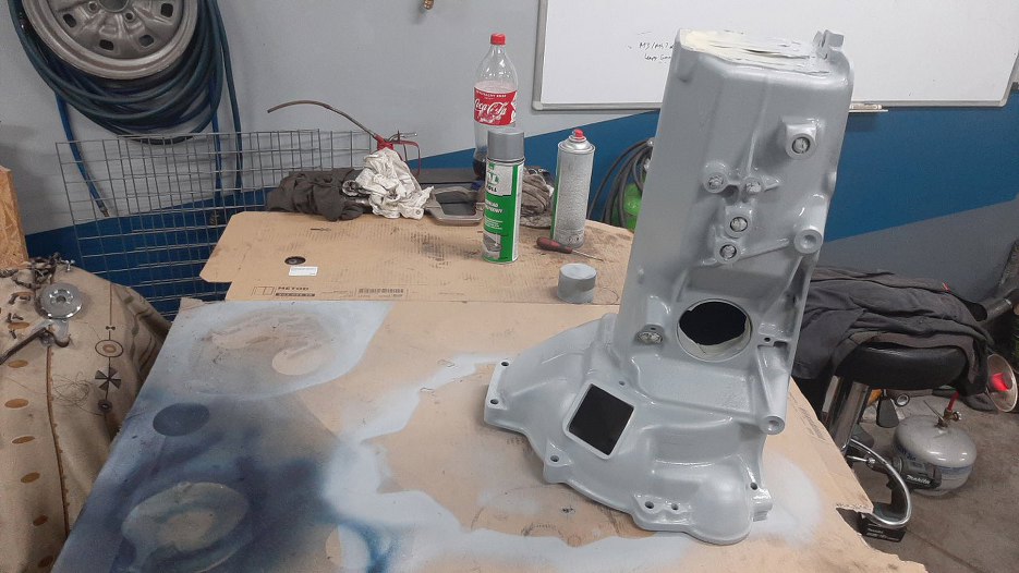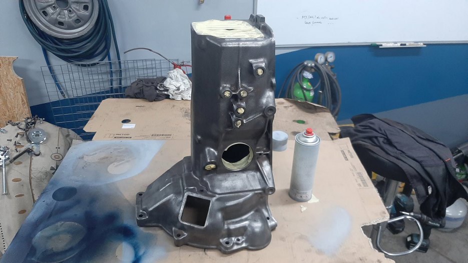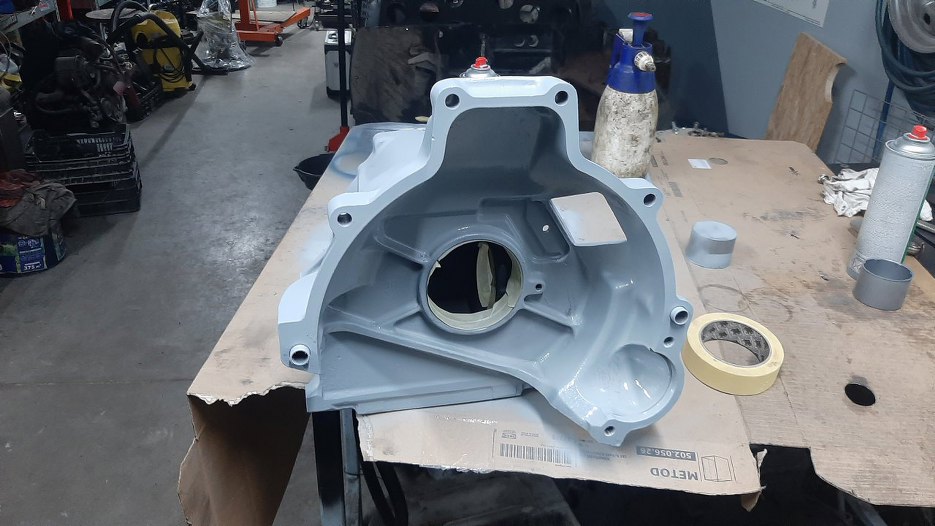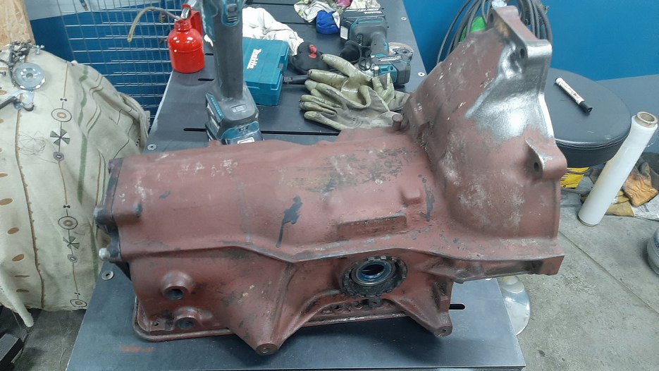 Po zdarciu farby z miejsca, gdzie przechodzą części wybieraków biegów, okazało się, że są one zabezpieczone pinami. Późniejsze skrzynie miały te części zakute na stałe, więc myślałem, że i tu tak będzie. Fajnie, dzięki temu da się to wyjąć i sprawdzić. I malowanie skrzyni będzie łatwiejsze.