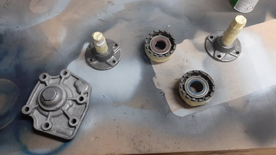 Wybiłem piny i wyjąłem wybieraki. Uszczelnione w obudowie są oringami. Dopiero teraz zebrałem się na odwagę i wykręciłem ostatni mechanizm wybierania biegu. Ta śruba się nie urwała. Tą urwaną dorobię.