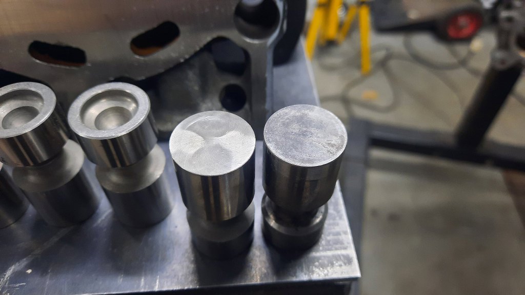Po lewej widać stary popychacz, a dokładnie - jego powierzchnię, którą styka się z wałkiem rozrządu. Jest cała w drobnych wżerach - kropkach. Po lewej nowy dla porównania.