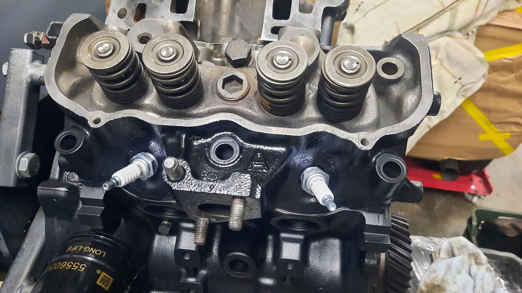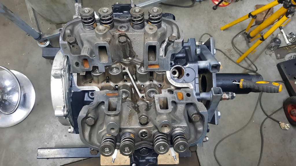Następnie przykręciłem głowice. Śruby też musiałem wyskrobać z zapasów, bo silnik dostałem w kawałkach, a śrub w tych kawałkach nie było.