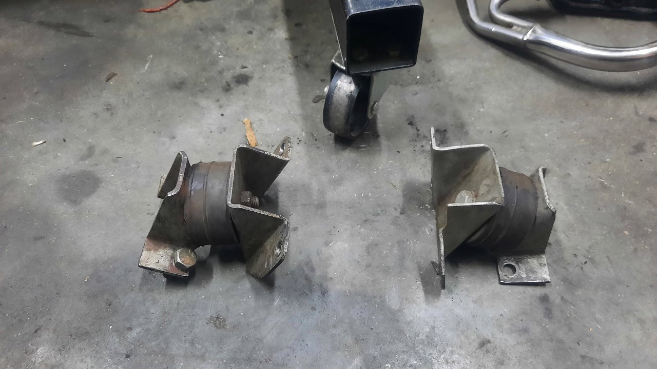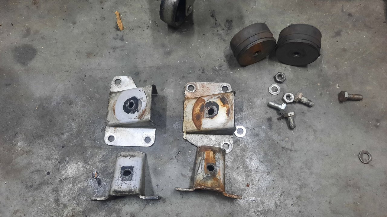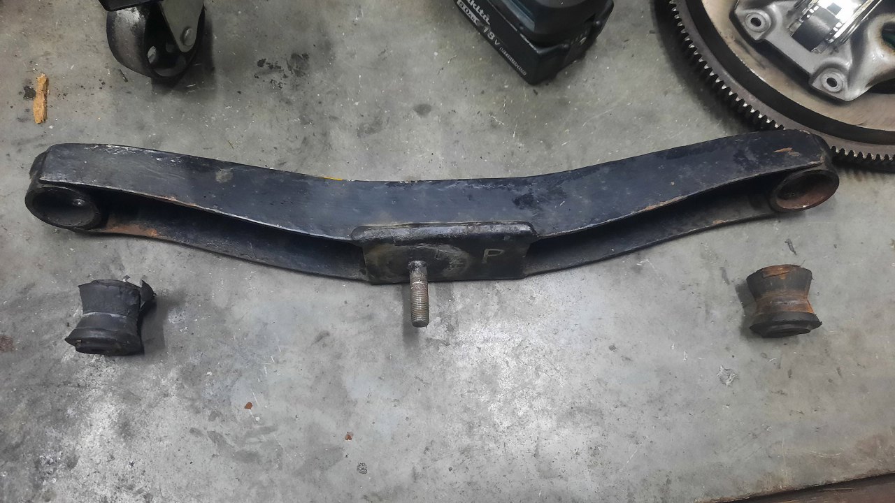 Z łapy skrzyni biegów wyjąłem gumy. Potem, po piaskowaniu, obspawałem łebek tej śruby, bo ledwo się trzymał w belce. Na koniec całość zostanie pomalowana proszkowo.