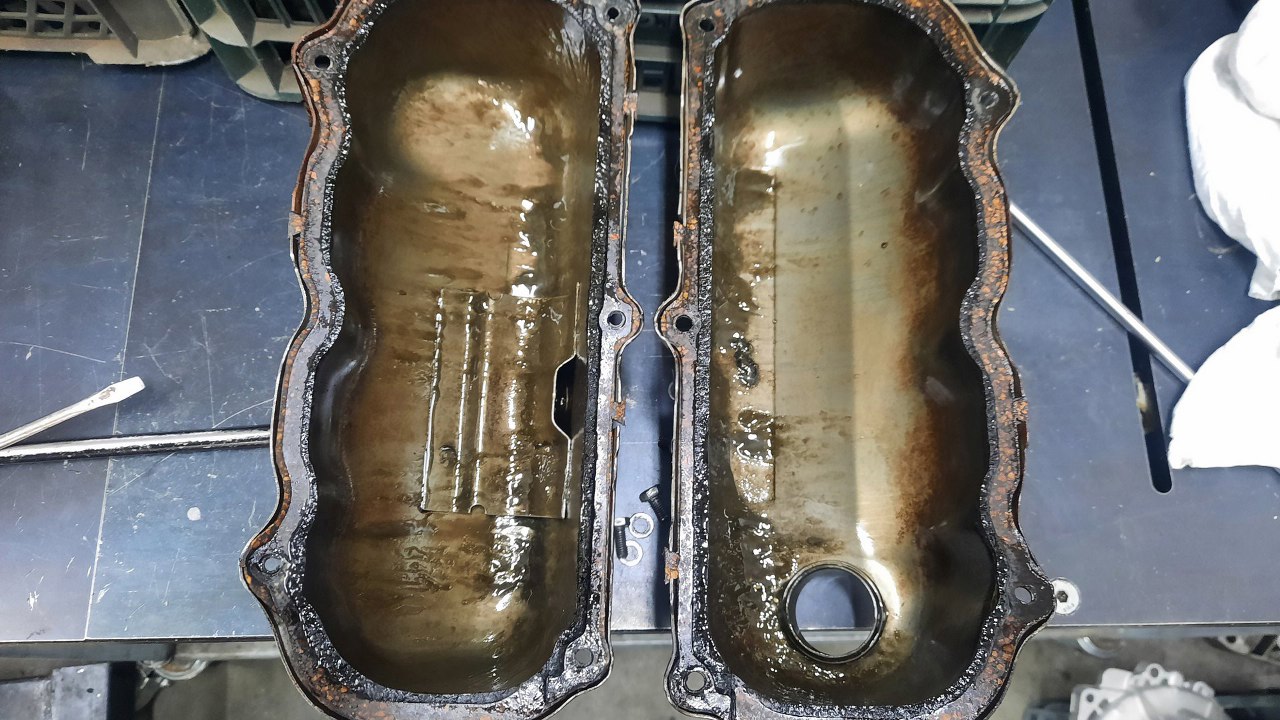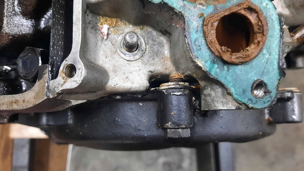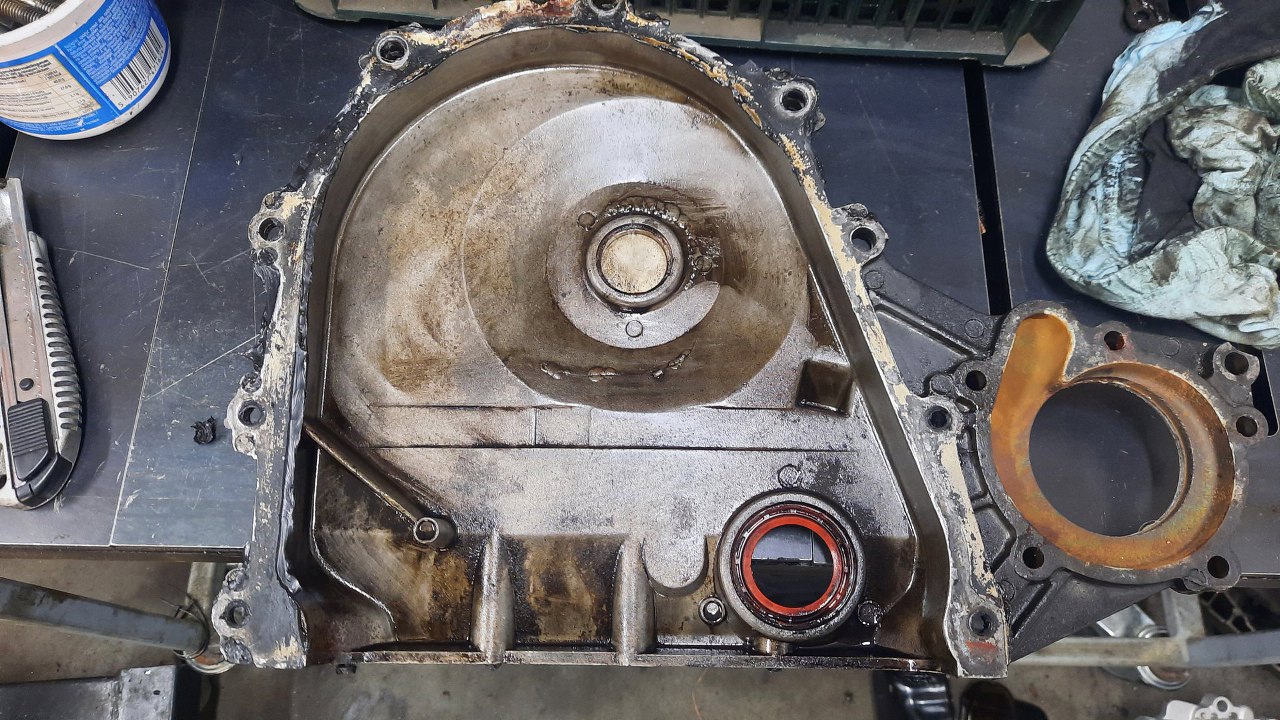 Odkręciłem też pokrywę rozrządu. Nieźle pospawana i od spodu. Podejrzewam, że komuś pękła podczas wyjmowania łożyska wiatraka.