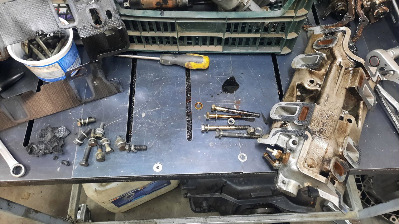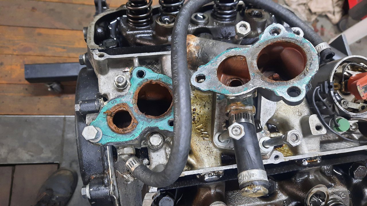 Podczas odkręcania kolektora dolotowego (muszę ten zdjąć, bo jest pod dwugardzielowy gaźnik) zauważyłem jeszcze, że śruby mocujące pokrywę rozrządu są za długie i wystają.