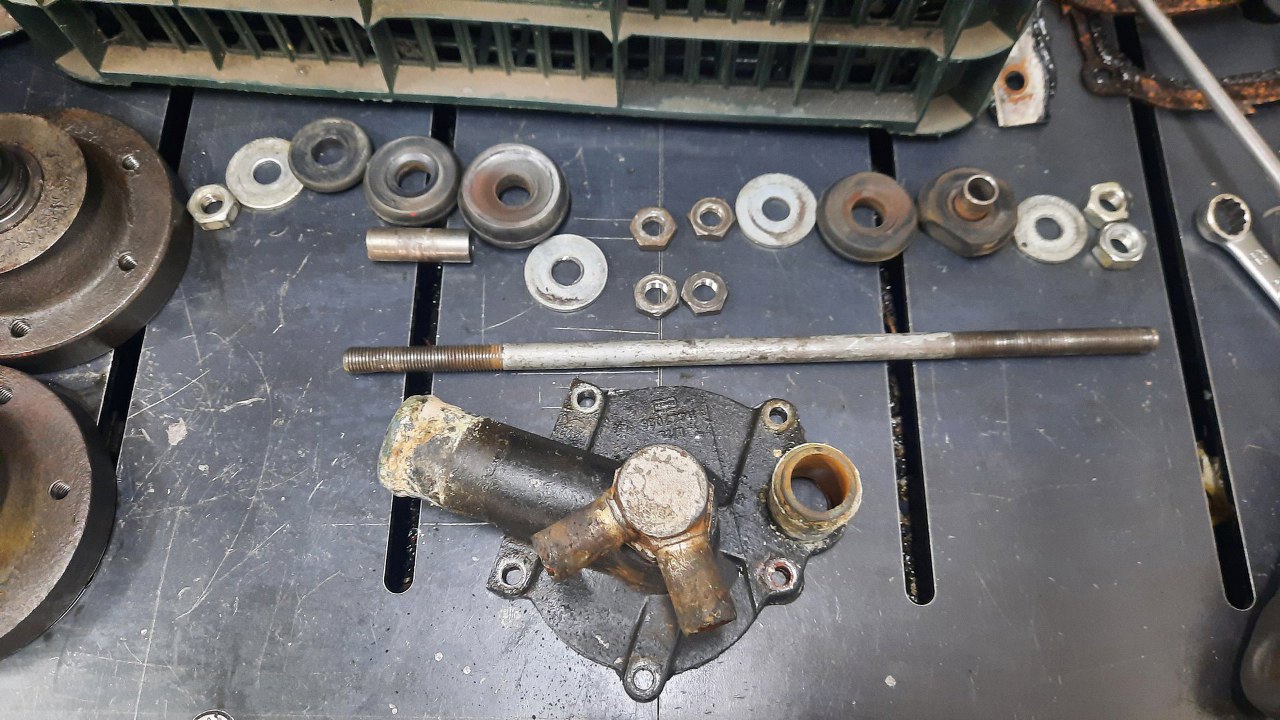 Przygotowuję to wszystko, co jest stalowe, do cynkowania. Rozłożyłem też do końca ten amortyzator boczny silnika z poprzednich zdjęć.