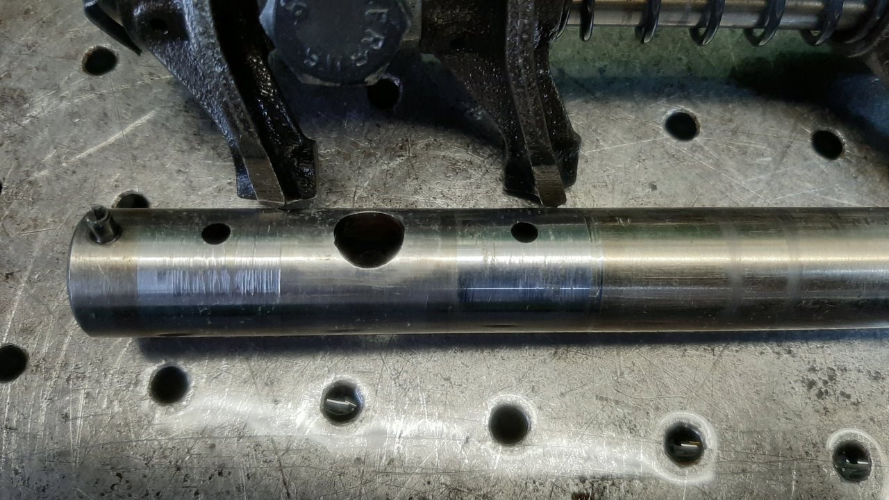 No i zachwycony nie byłem. Obie są zniszczone. Ta górna praktycznie na każdej dźwigience ma przytarcia. Ale ta dolna... w sumie rokuje :). Ma tylko jedno przytarcie. Udało mi się to lekko wyczyścić pilnikiem. Same ośki są bardzo twarde, więc wystające fragmenty łatwo schodzą pilnikiem bez uszkadzania płaszczyzny. Potem wypolerowałem ją dokładnie. Odwrócona do góry nogami będzie jeszcze dobrze służyła. Tu zdjęcie jeszcze przed ogarnięciem.