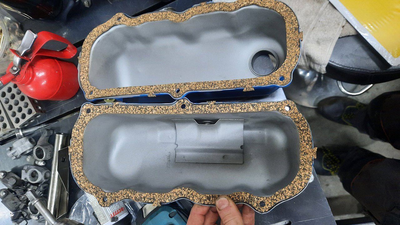 Pokrywy zaworów już ładnie wyschły po malowaniu. W środku są dokładnie doczyszczone. Założyłem uszczelki.