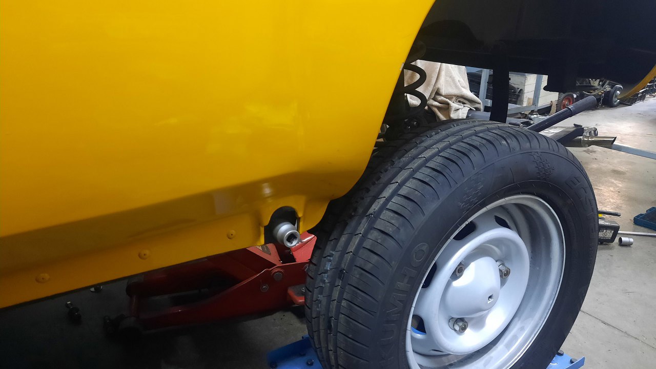 Po rozpięciu amortyzatora i pasa koło dość mocno dało się opuścić.