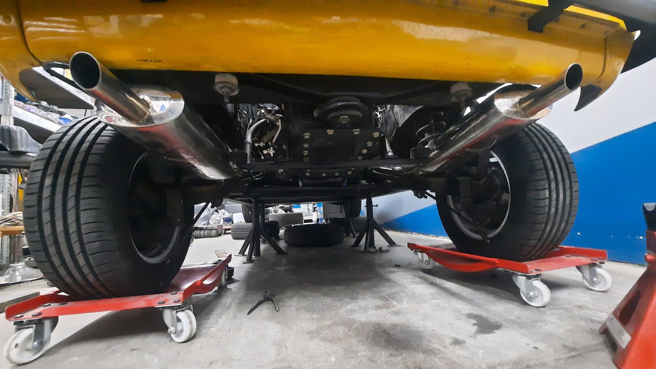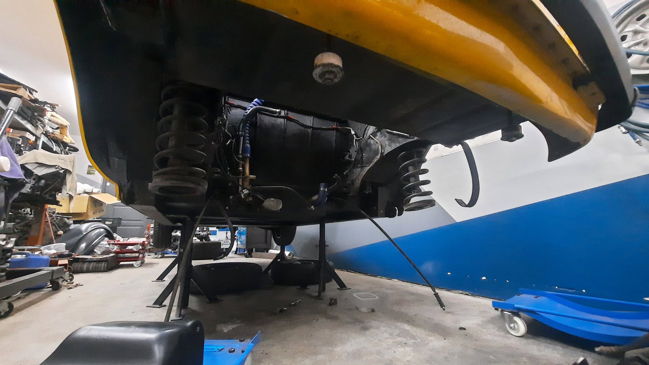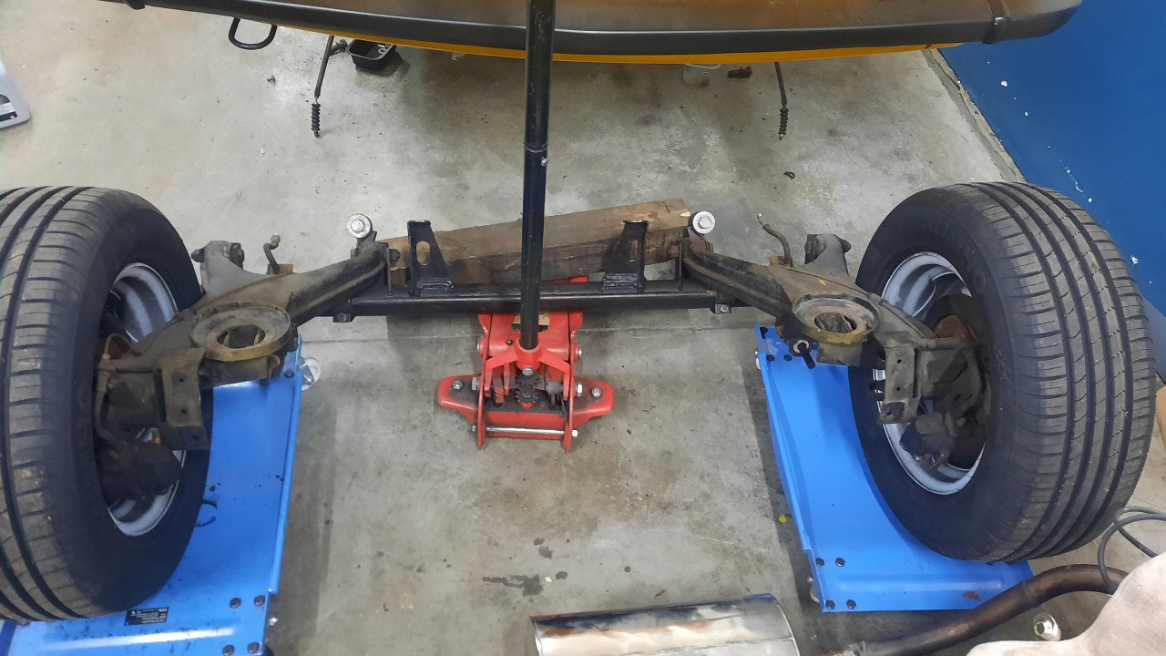 Potem wsunięcie silnika z zawieszeniem pod samochód nie było takie proste, bo zabrakło mi kilku milimetrów i musiałem jeszcze nieco wyżej podnieść kobyłki.