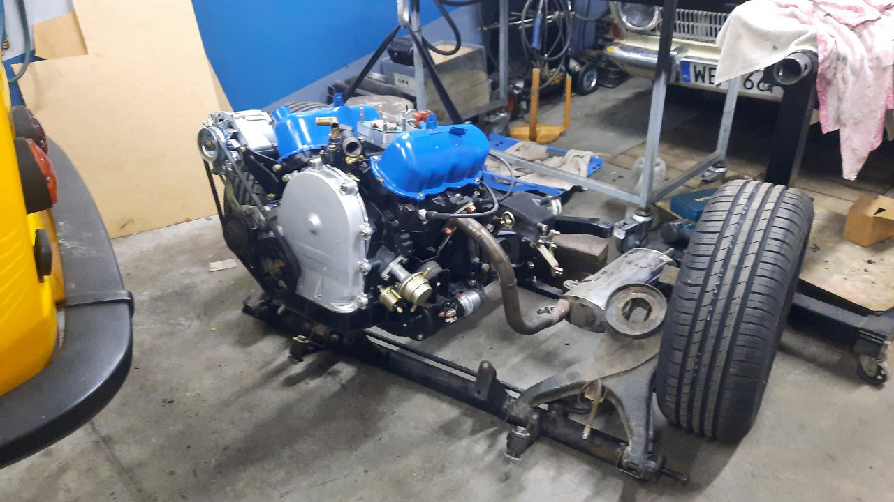 Poszło jednak dość łatwo mimo wszystko. Podniosłem silnik z zawieszeniem i przykręciłem wszystko do samochodu.