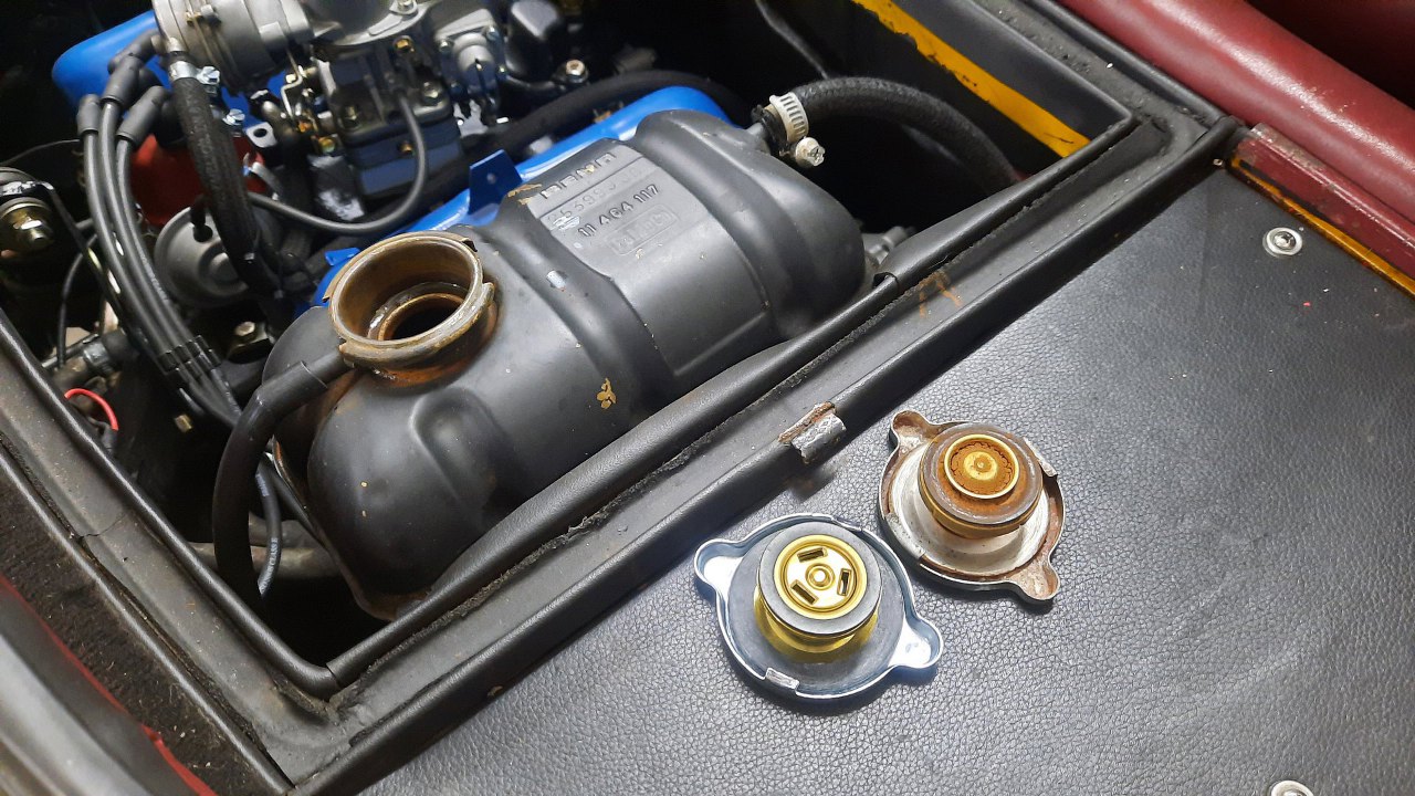 Wymienię korek zbiorniczka - powinien tu być ten po lewej, z gumą w obu miejscach przylegania.