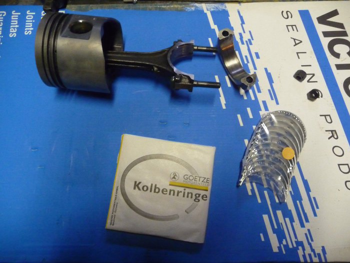 Potem sześć razy to samo - zakładanie pierścieni, panewek, wkładanie tłoka, dokręcenie stopy korbowodu. Gotowe.