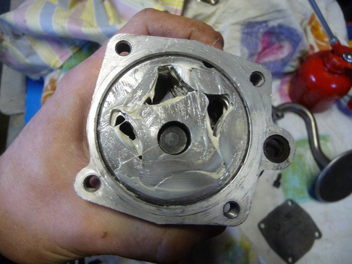 Koła zębate pompy oleju również posmarowałem smarem montażowym. Dzięki temu pierwsze zassanie oleju z miski olejowej będzie dużo łatwiejsze.