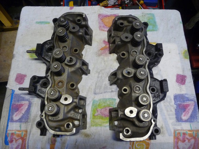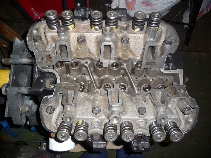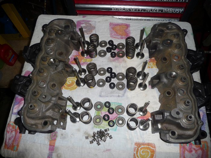 Ponieważ jeszcze nie mam wszystkiego gotowego do założenia przodu silnika, to nie mogę jeszcze zamknąć dołu miską olejową. Dlatego teraz przygotowałem głowice i ich wszystkie części składowe. Głowice wcześniej zostały poddane obróbce w szlifierni - został zrobiony szlif zaworów i frezowanie gniazd, zostały również splanowane. Po powrocie ze szlifierni zostały domyte, wyczyszczone i pomalowane.