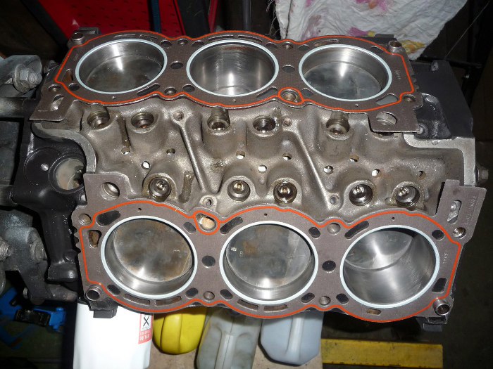 Następnego dnia przygotowałem wszystko związane z pokrywą rozrządu i zacząłem składać. Najpierw uszczelki kanałów wodnych przechodzących do pompy wody i blacha pośrednia.