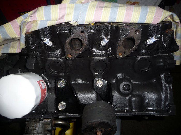 Musiałem już kończyć na ten dzień, więc założyłem jeszcze tylko filtr oleju, łapę silnika i świece do prawej głowicy.