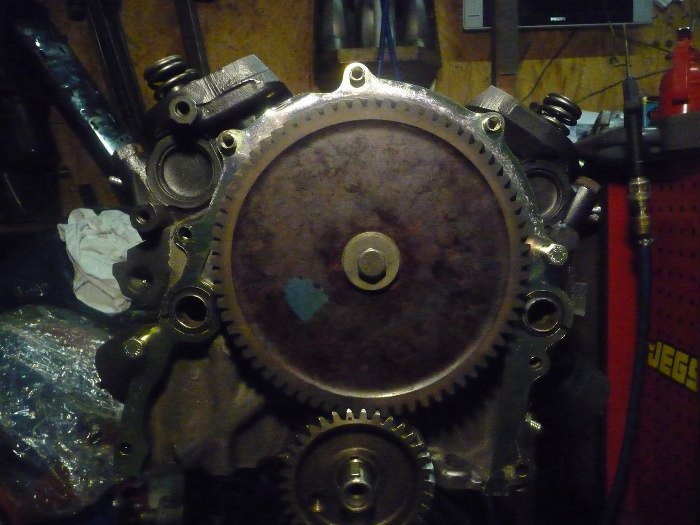 Następnie koło zębate wałka rozrządu. Ważne, żeby było założone w odpowiedniej pozycji w stosunku do koła na wale korbowym.