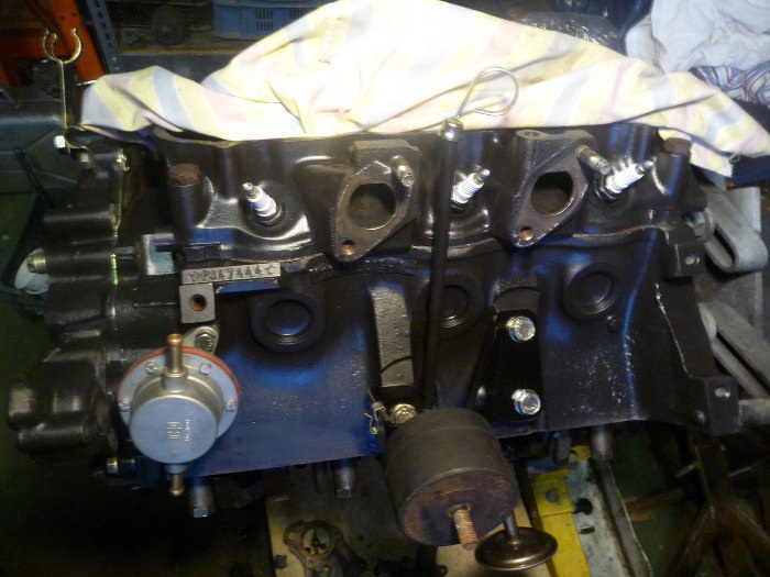 Dokończyłem też wkręcanie świec, przy okazji montując też pompę paliwa i drugą łapę silnika.