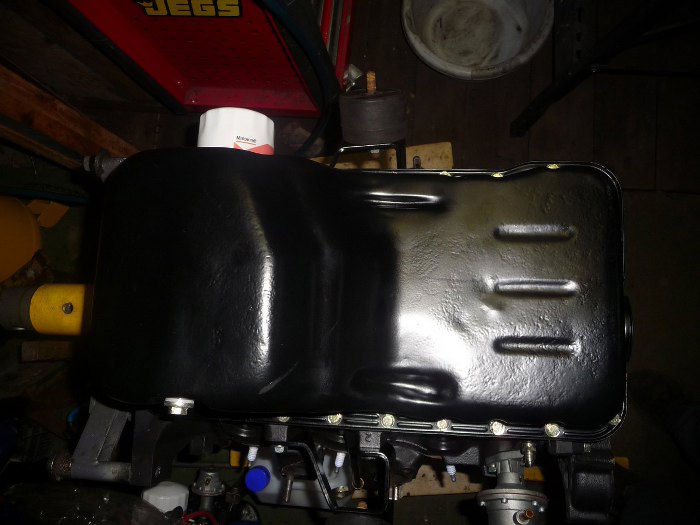 Miska olejowa była bardzo dokładnie umyta, a następnie pojechała do piaskowania i malowania proszkowego. Dzięki myciu, po piaskowaniu piach łatwo jest wyczyścić i wydmuchać jego resztki ze środka. Jest to konieczne, żeby nie dostał się do świeżego oleju i nie uszkodził silnika.