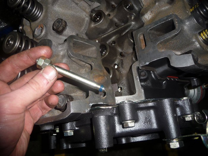 Wracamy na górę silnika. Wkręciłem dwie szpilki kolektora dolotowego (pozostałe 6 śrub będzie później).