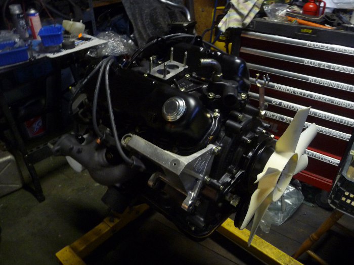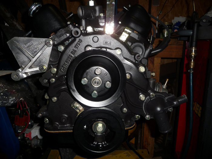 Następnie udało mi się Michała namówić na nową pompę wody. Stara miała rdzawe ślady z otworu poniżej flanszy, więc istniała spora szansa, że może być wkrótce nieszczelna. Pompę wody oczywiście pomalowałem, żeby pasowała do silnika.