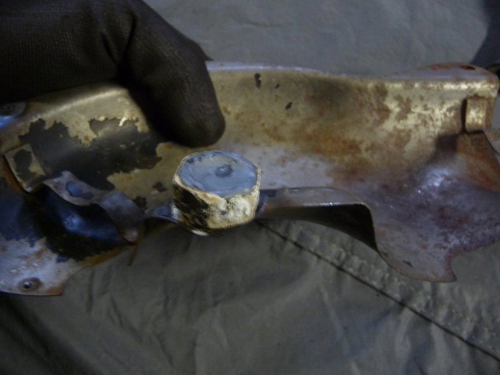Najpierw urwana śruba. Przyspawałem do jej resztki podkładkę, a następnie dużą nakrętkę.